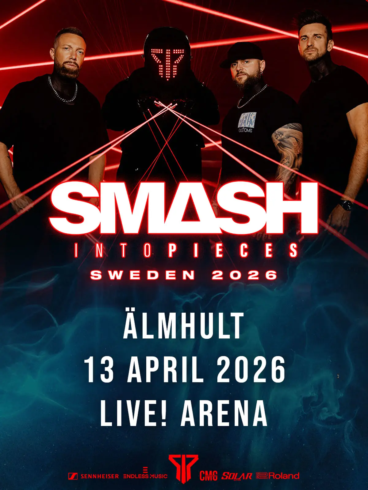Det cinematiska rock-fenomenet Smash into Pieces ger sig ut på turné i Sverige efter releasen av sitt hyllade album ArmaHeaven. Kända för sina explosiva liveframträdanden och futuristiska berättarstil fortsätter bandet att tänja på gränserna för modern rock. Med över en miljard streams och sin dubbelplatina-hit “Six Feet Under” levererar Smash into Pieces en cinematisk konsertupplevelse fylld med laser, eld och känsla – som att kliva rakt in i en film.